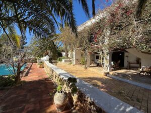 Espectacular Finca de mas de 400 años de antigüedad guardando el más puro estilo Ibicenco. Rodeada de jardines con buganvillas y palmeras, invitan a pasar el día en el exterior con múltiples terrazas.